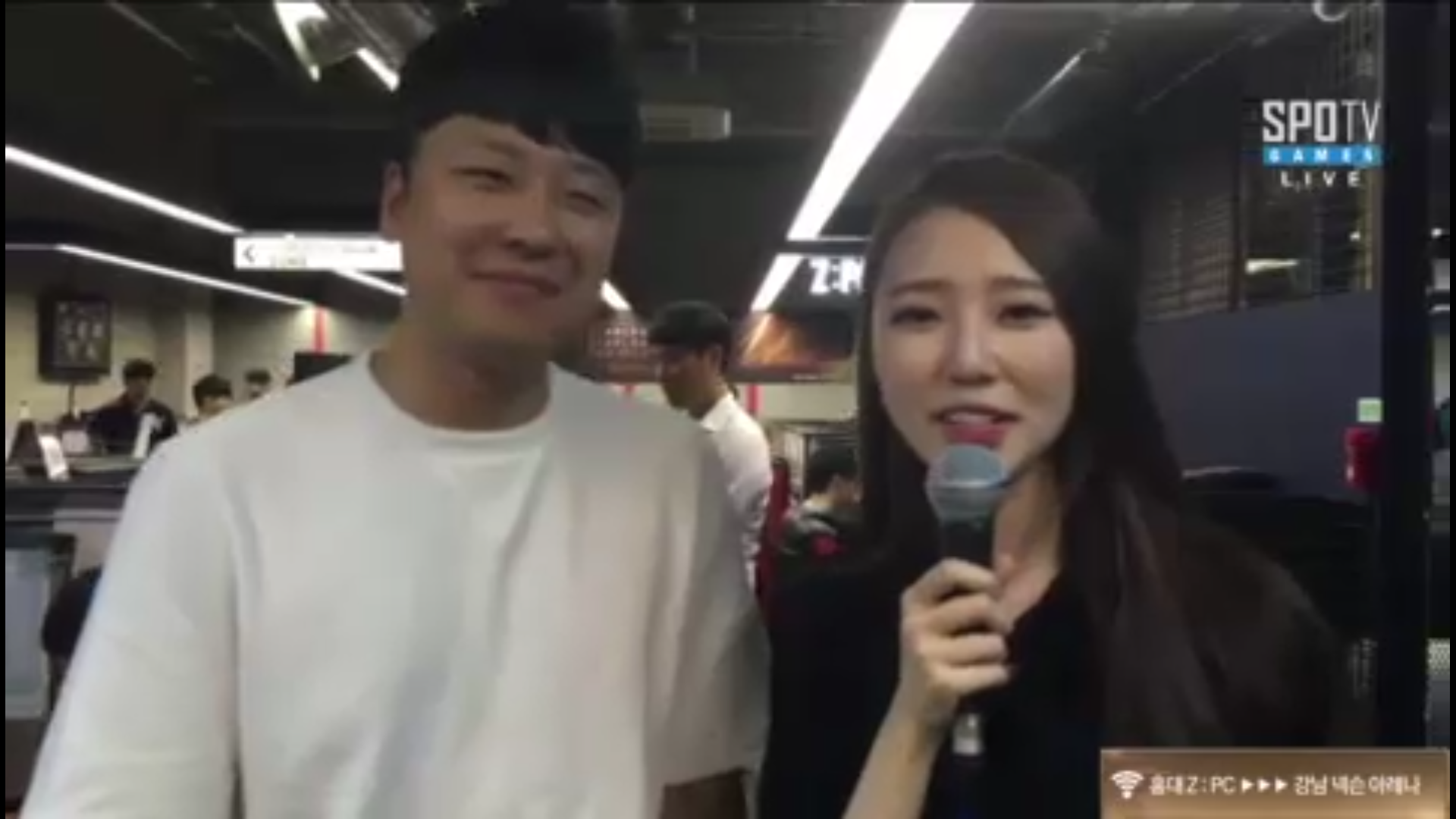 크로우 : 음... 당연히 박상현 캐스터님이시겠죠. 특유의 재치 넘치는 중계에 더불어, 팬들을 하나하나 챙겨주시고 인사 나눠 주시는 게 매력 포인트랄까요.