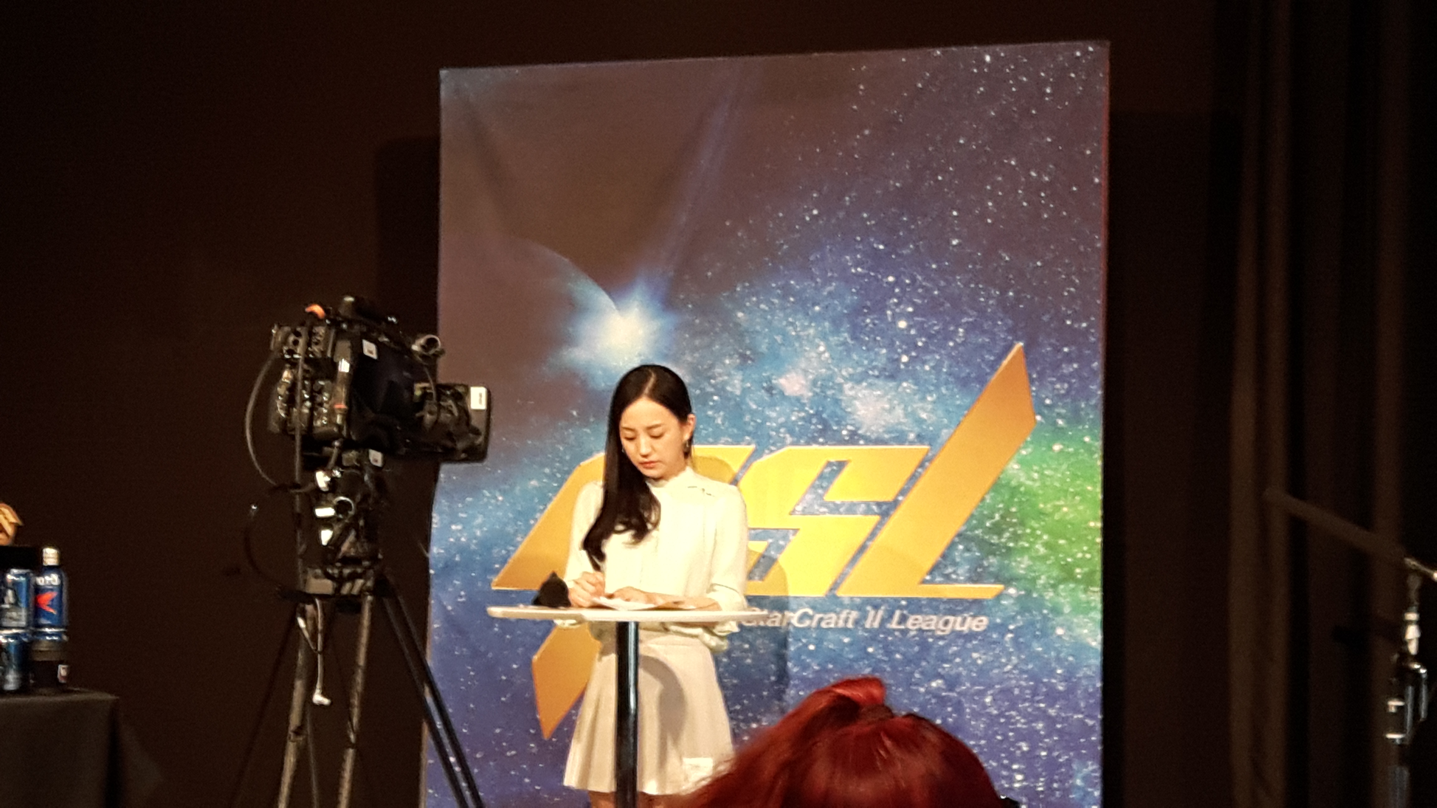 크로우 : 네. 저 분은 문규리 아나운서님이십니다. GSL 에 오랫동안 참여하셨구요. 차후에 다룰 "히오스 슈퍼리그" 에도 참여하셨습니다. 주로 곰TV - 현재의 아프리카TV 측에서 활동하셨는데, OGN 과 SPOTV GAMES 에도 건너가서 활약하셨습니다.